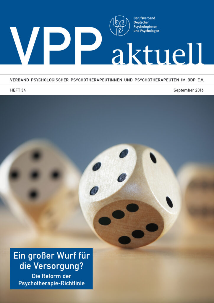 Der Themenschwerpunkt dieser Ausgabe von "VPP aktuell" widmet sich der vom Gemeinsamen Bundesausschuss (G-BA) am 16. Juni 2016 beschlossenen Änderung der Psychotherapie-Richtlinie und der damit einhergehenden Strukturreform der ambulanten Psychotherapie.